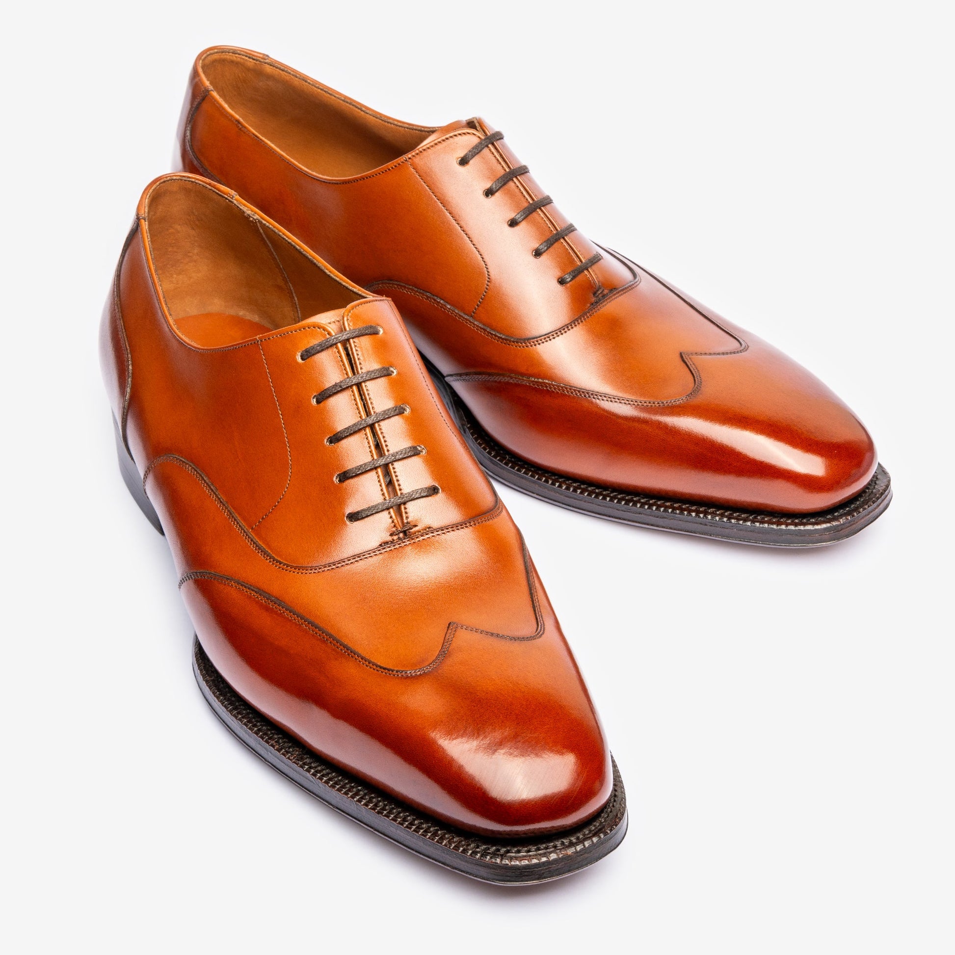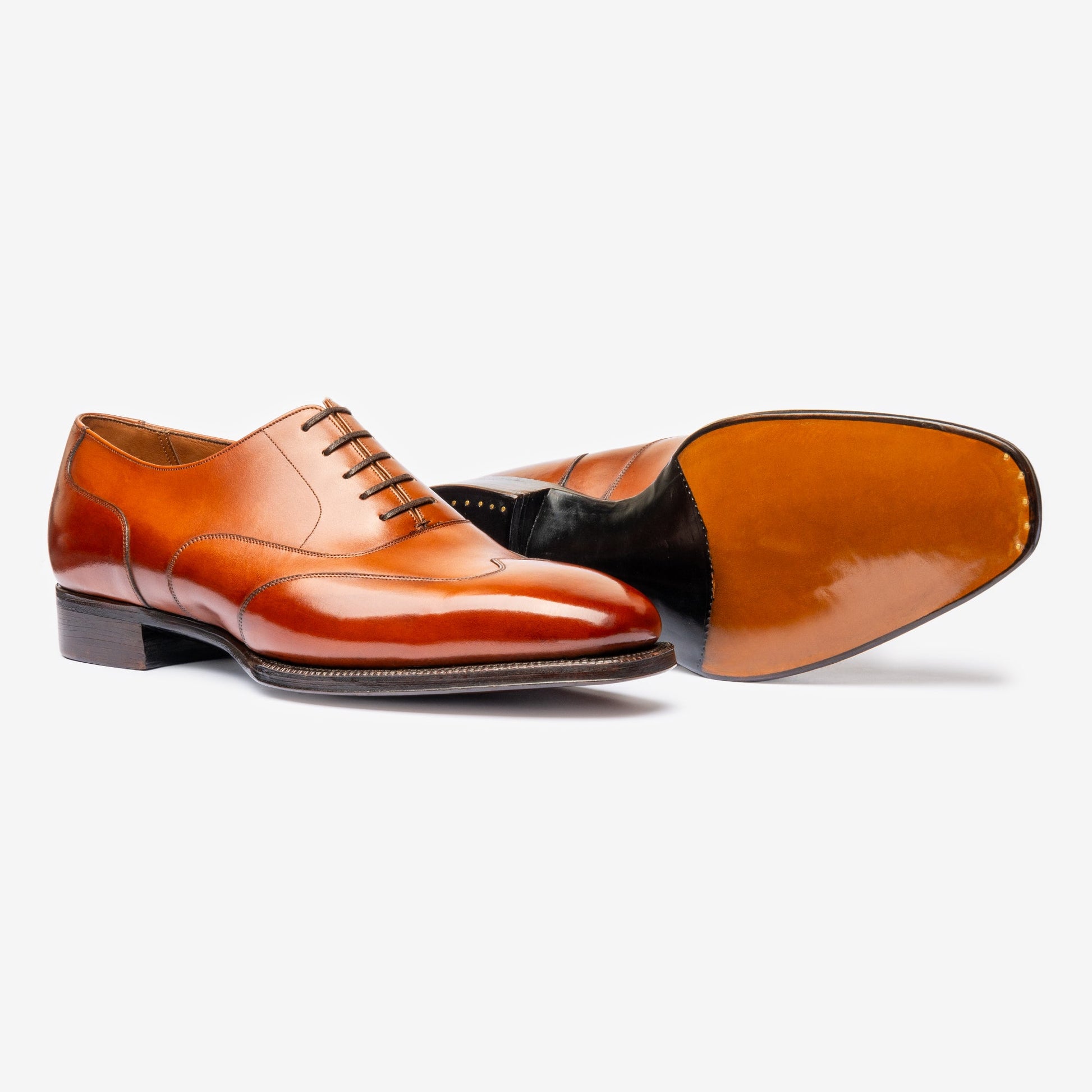Suelas de cuero curtido con corteza de roble de FJ Baker, cueros superiores de edición limitada de las curtidurías Zonta, Weinheimer, Du Puy y Annonay, y con la opción de agregar punteras metálicas.