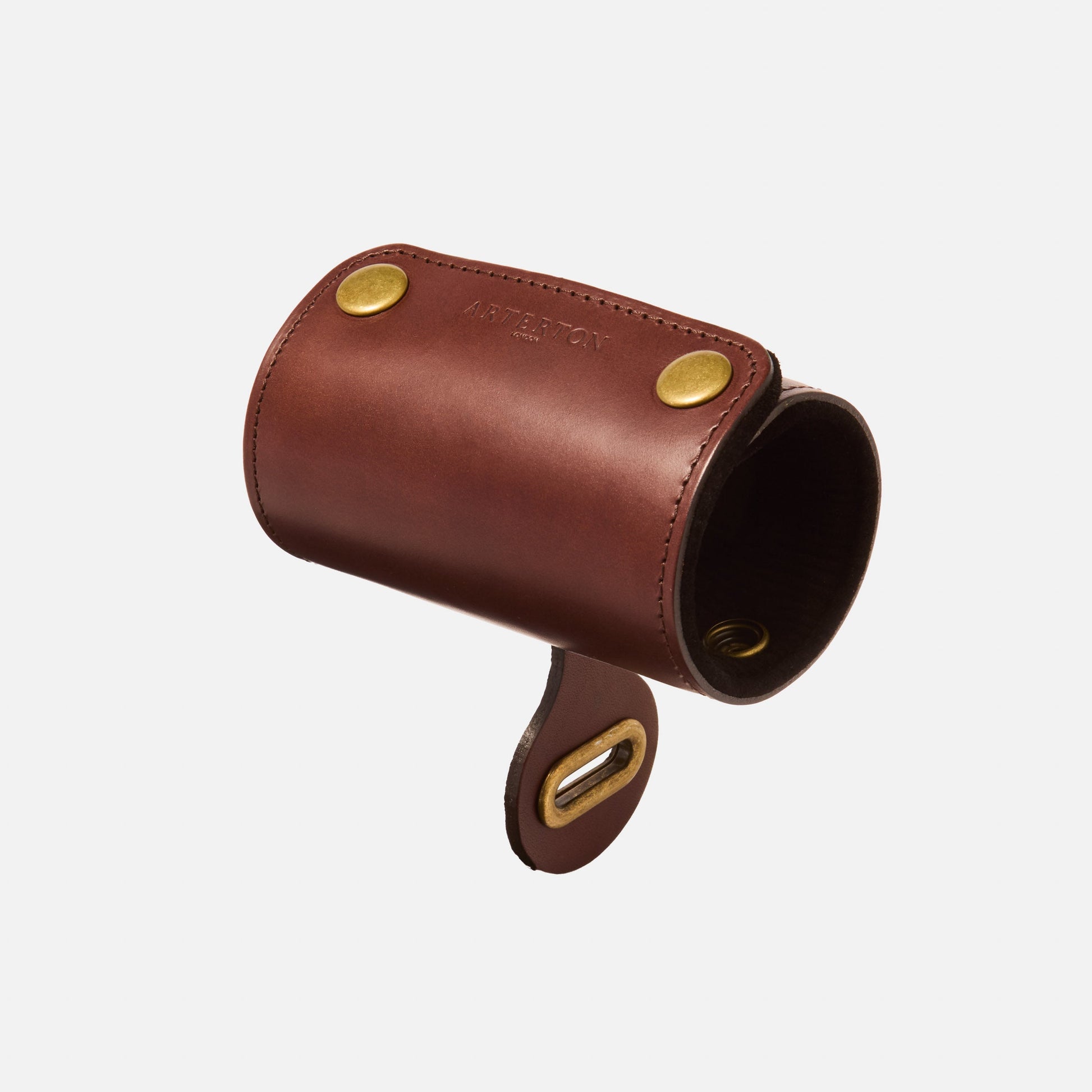 An add-on to our travel handles, this beautiful luggage attachment is fashioned out of bridle leather and pig suede to allow discerning travellers to connect their garment bags to any suitcase.