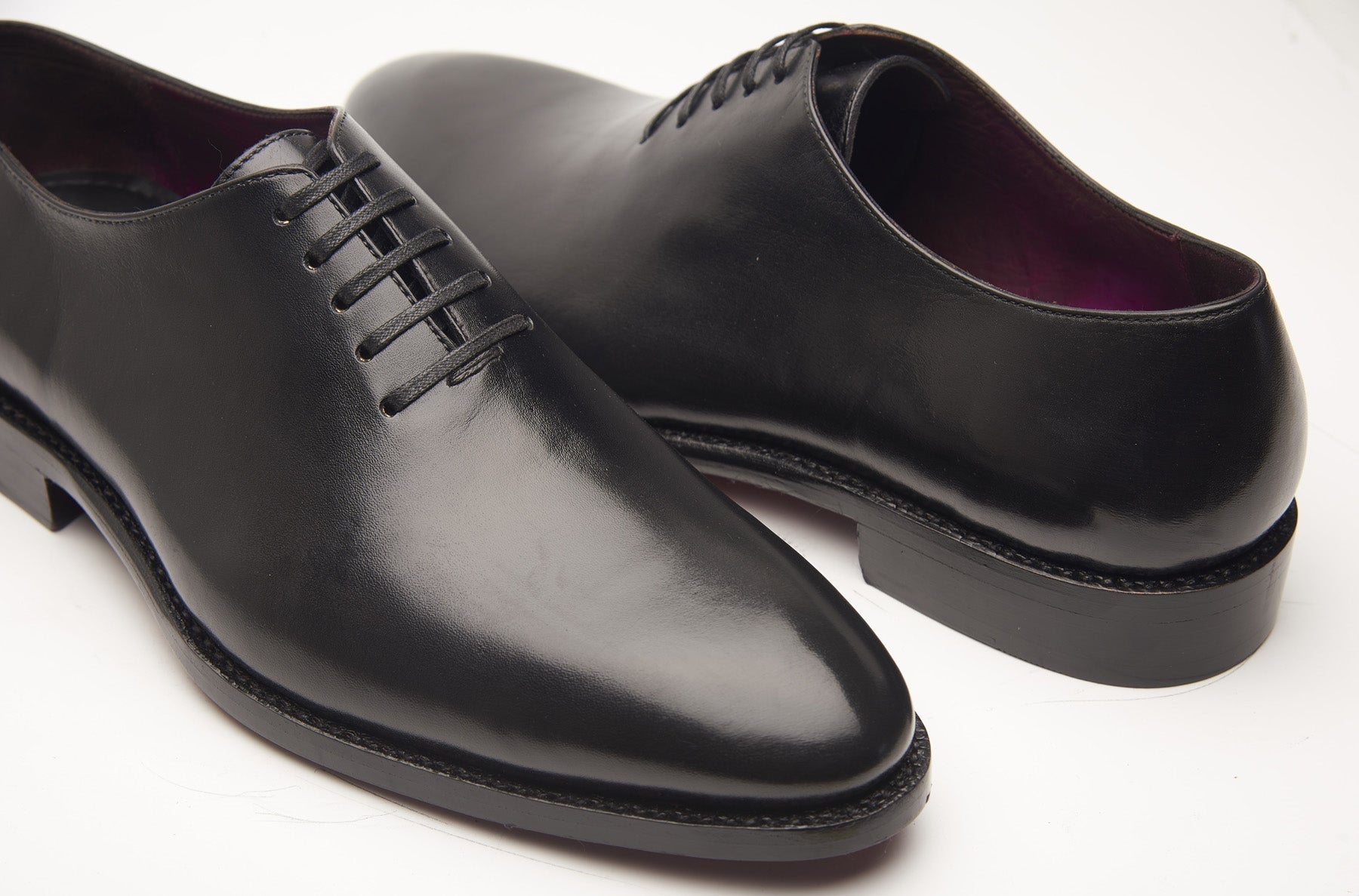 El modelo Constance-X es un Oxford de una sola pieza, sin costuras, confeccionado sobre una horma a medida para uno de nuestros clientes más prestigiosos. La elaboración de un Oxford de una sola pieza sin costuras representa la máxima expresión de la maestría zapatera, donde la parte superior del zapato se compone de una única pieza de cuero, sin costuras ni uniones. El Constance-X presenta una cintura entallada y, a diferencia de su hermano mayor totalmente negro, luce un acabado patinado en color berenjena.
