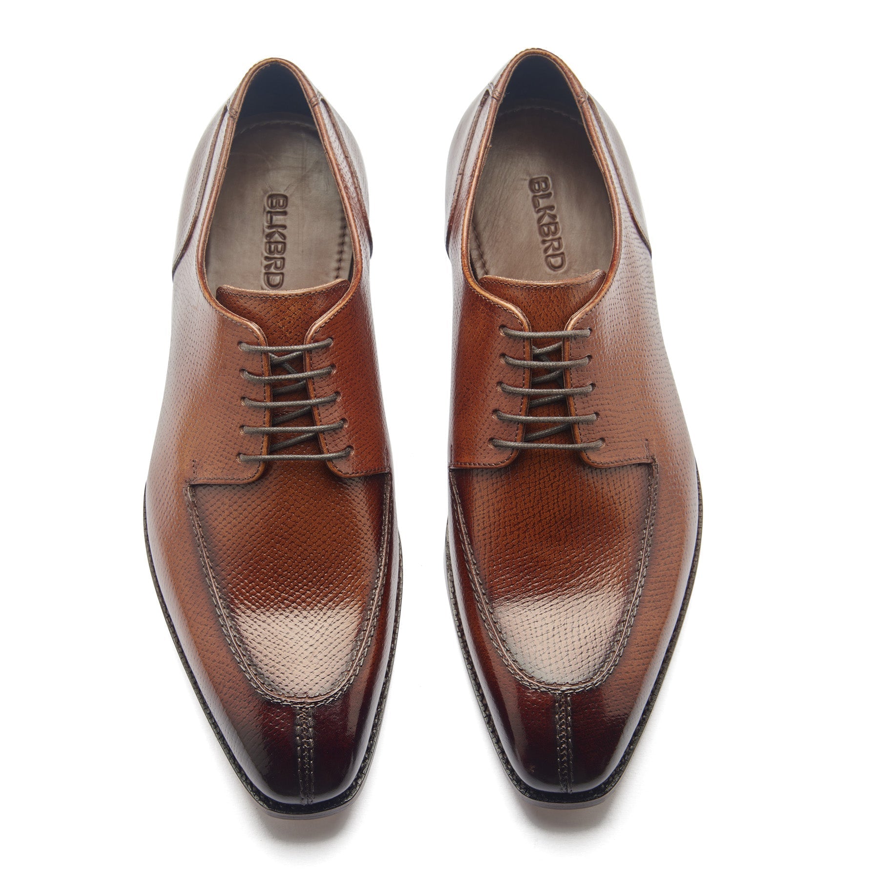 La piel granulada de Horween realza la calidad superior de estos zapatos derby y los hace muy versátiles, pudiendo combinarse tanto con cualquier vestido formal como con tus vaqueros azules favoritos.