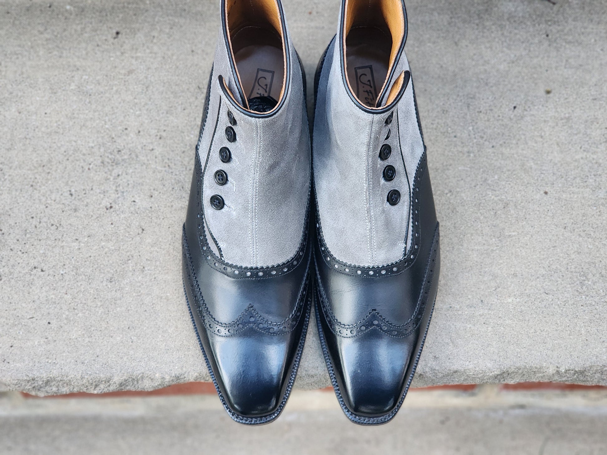 J.FitzPatrick - Botas con botones - Piel de becerro negra/Ante azul intenso