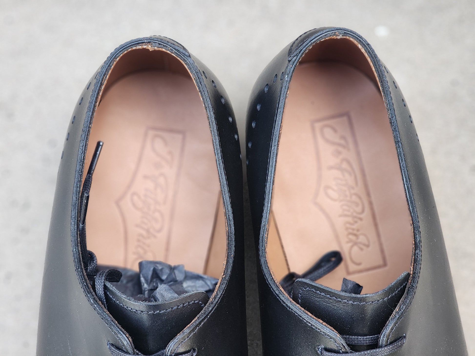 Este zapato oxford de una sola pieza de J. FitzPatrick ofrece un ajuste ceñido y alargado. Se ajusta bastante al mediopié, con una puntera estrecha y un empeine estándar. Si tienes pies de ancho estándar o estrecho, elige tu talla habitual. Si tienes pies anchos o más anchos, te recomendamos elegir media talla más para mayor comodidad. Si tu pie tiene un ajuste estándar, pero prefieres una sensación ceñida, elige tu talla habitual.