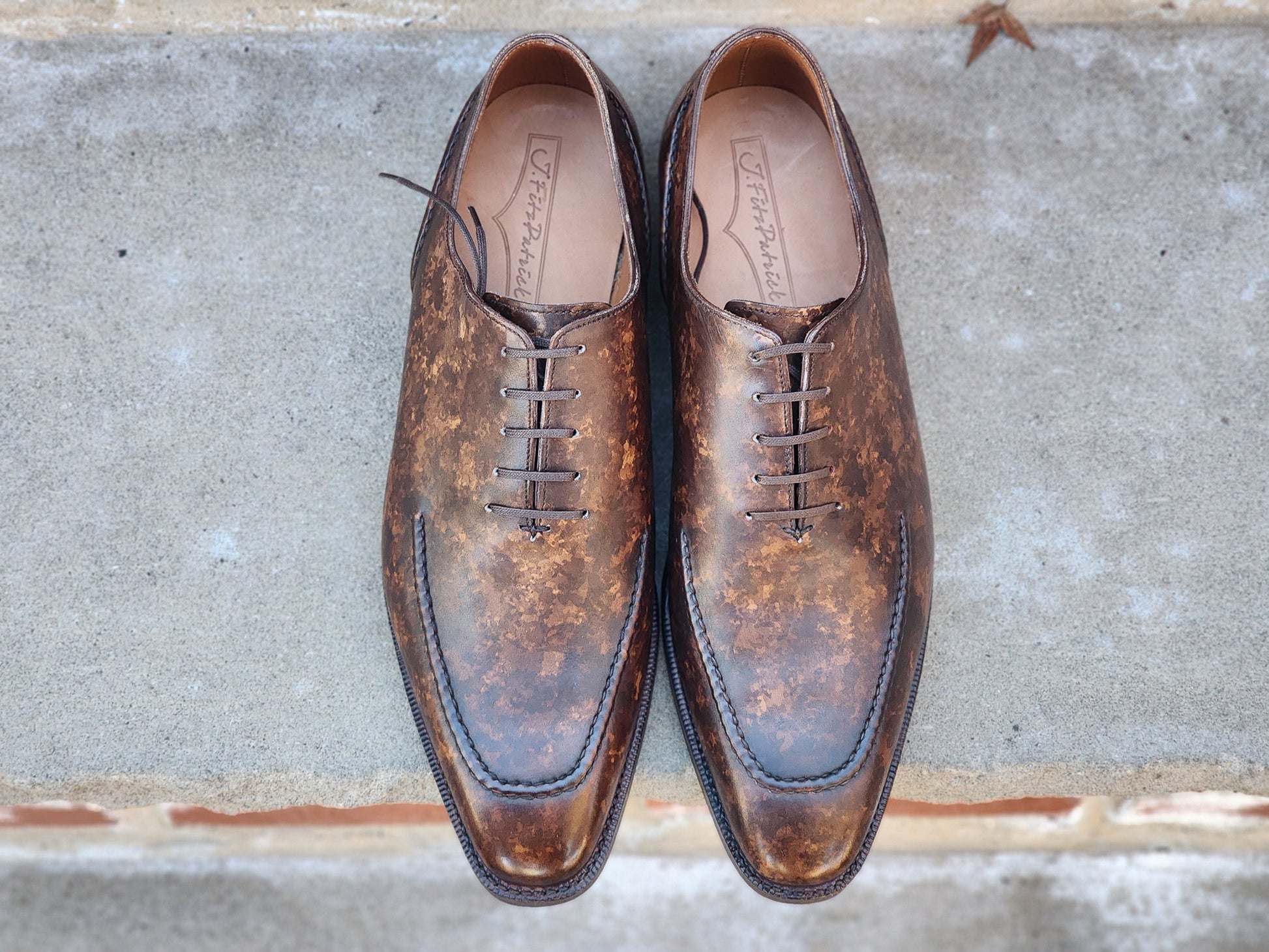 Ce modèle Oxford J.FitzPatrick offre un chaussant ajusté et allongé. Il enveloppe bien le médio-pied, avec une pointe étroite et un cou-de-pied standard. Si vous avez des pieds fins à de largeur standard, choisissez votre pointure habituelle. Si vous avez des pieds larges à forts, nous vous conseillons de prendre une demi-pointure au-dessus. Si vous avez un chaussant standard mais préférez un maintien ajusté, choisissez votre pointure habituelle.
