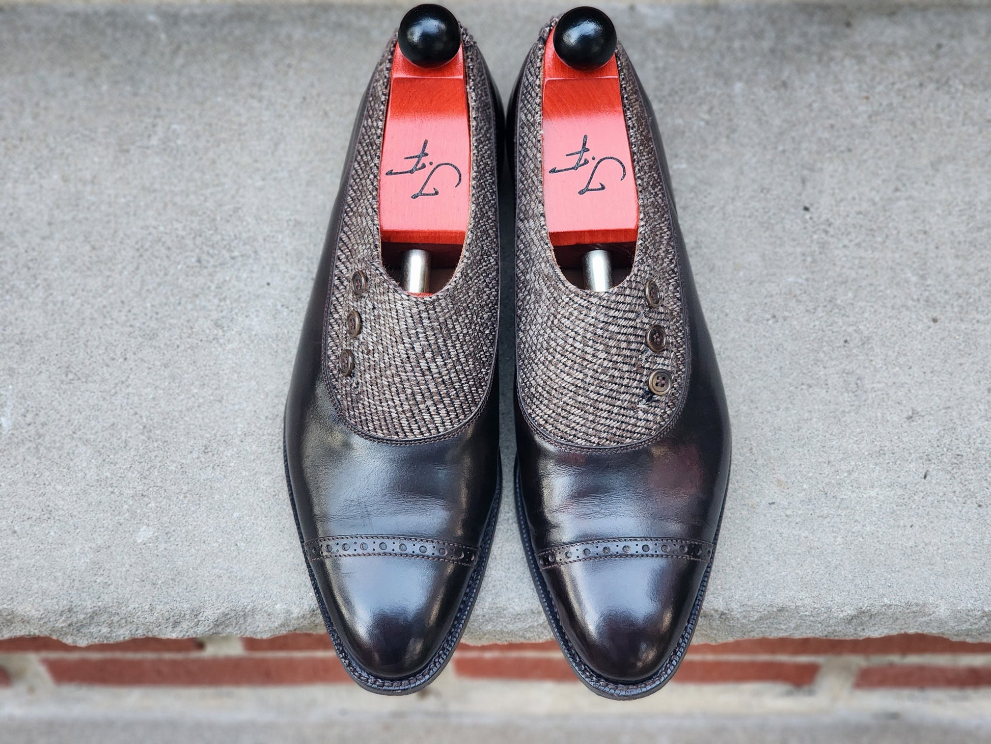 Ce modèle J.FitzPatrick à double boucle, monté sur la forme LPB, offre un chaussant généreux et allongé. Il s'apparente à un derby ample. La conception à double boucle, associée à la forme biseautée, crée un cou-de-pied large et un bout allongé. Si vous chaussez des formes étroites, nous vous conseillons de choisir une pointure en dessous.
