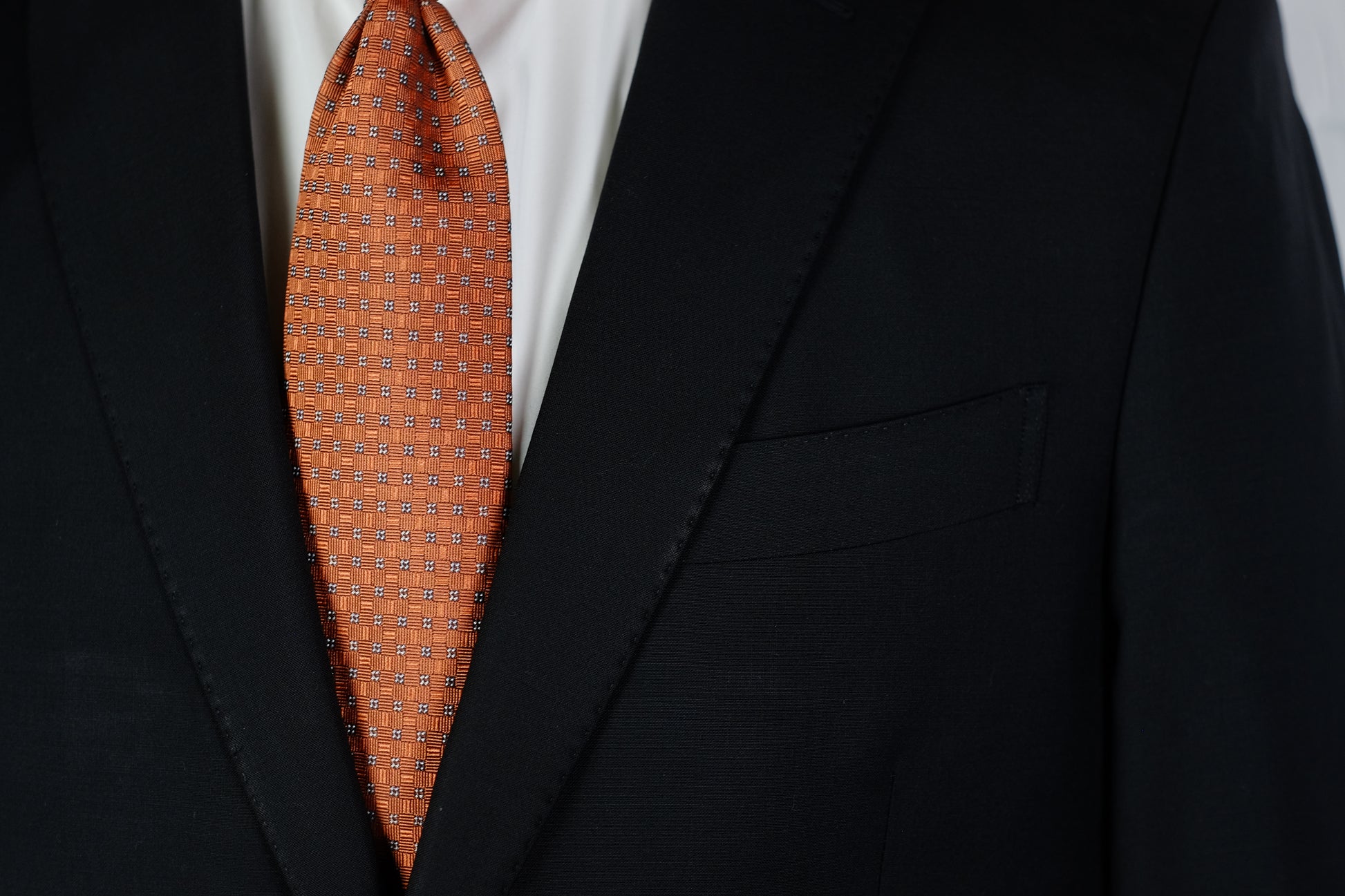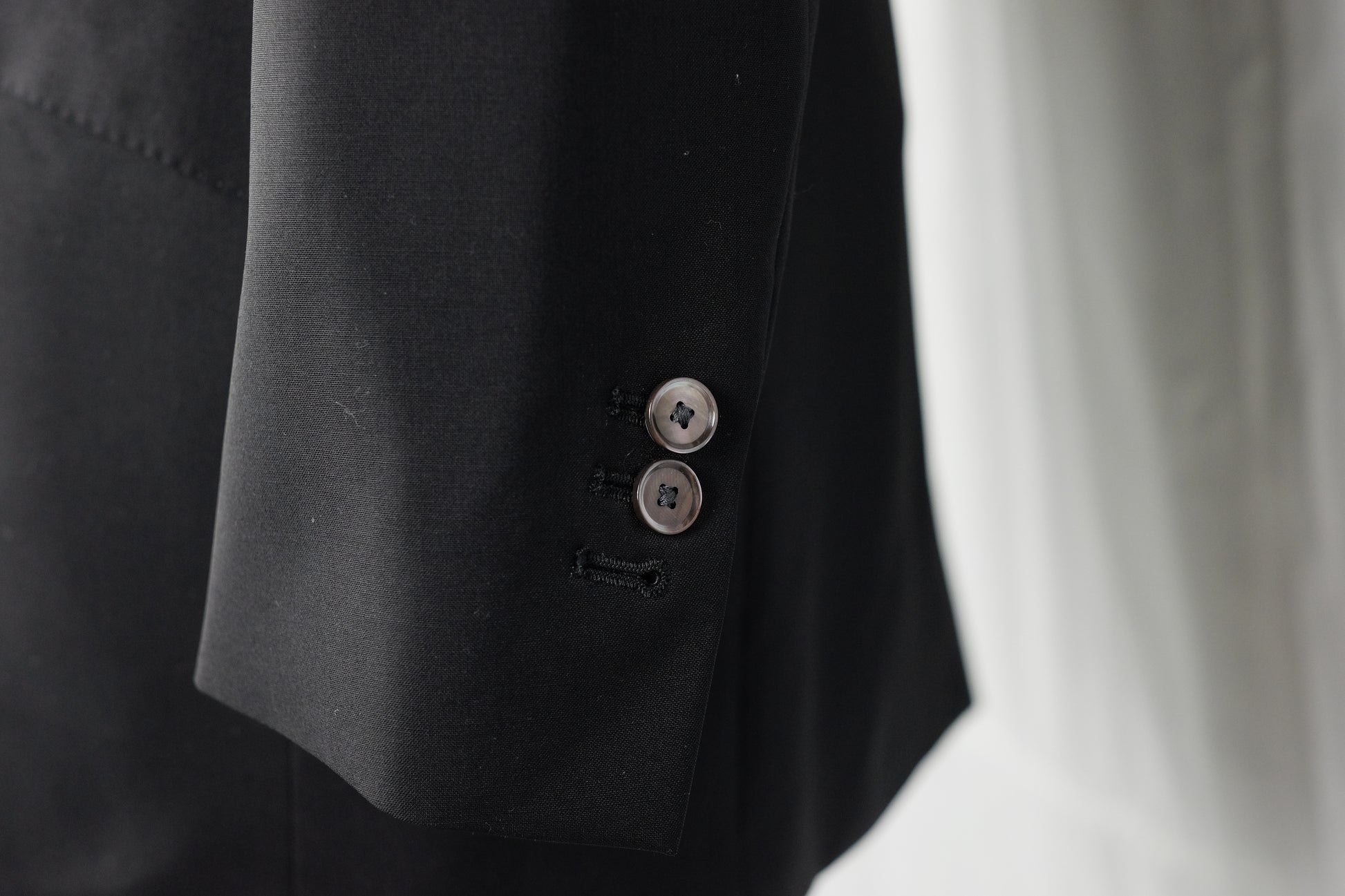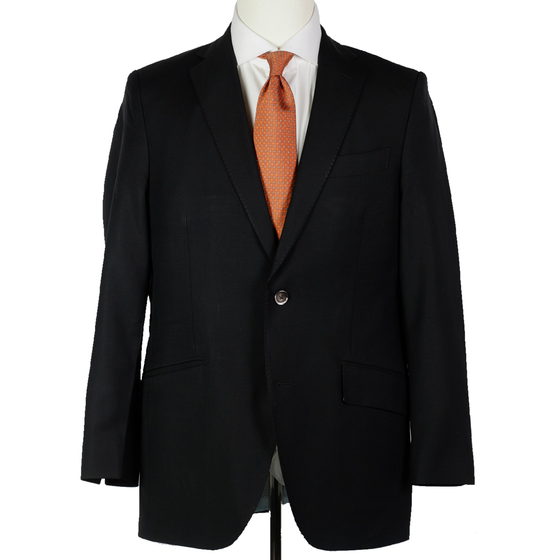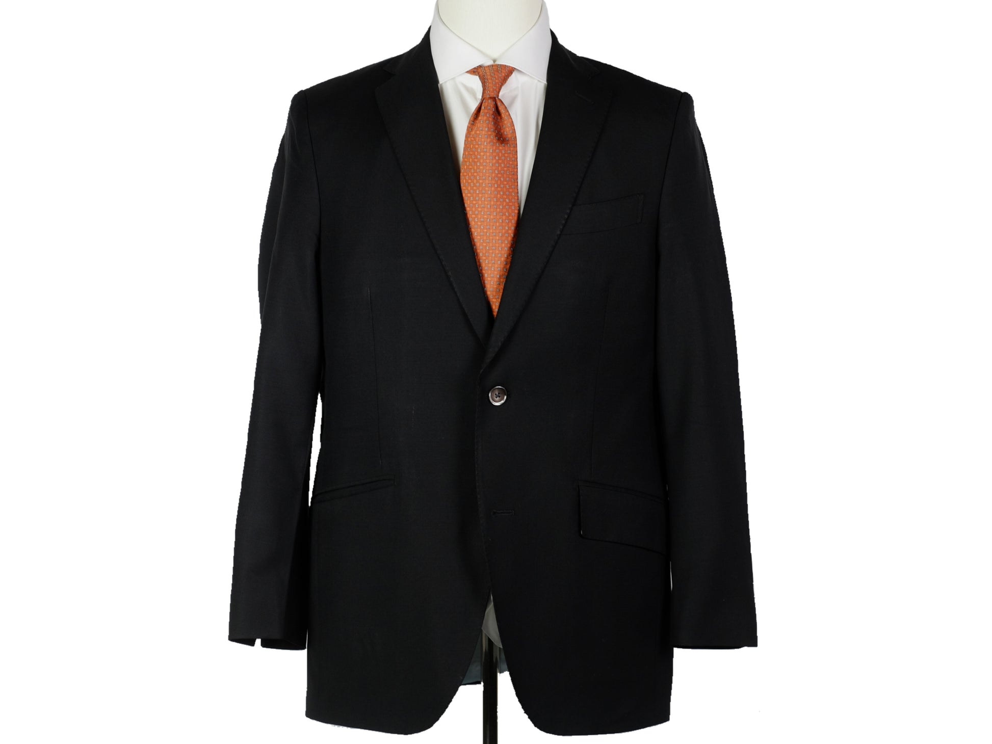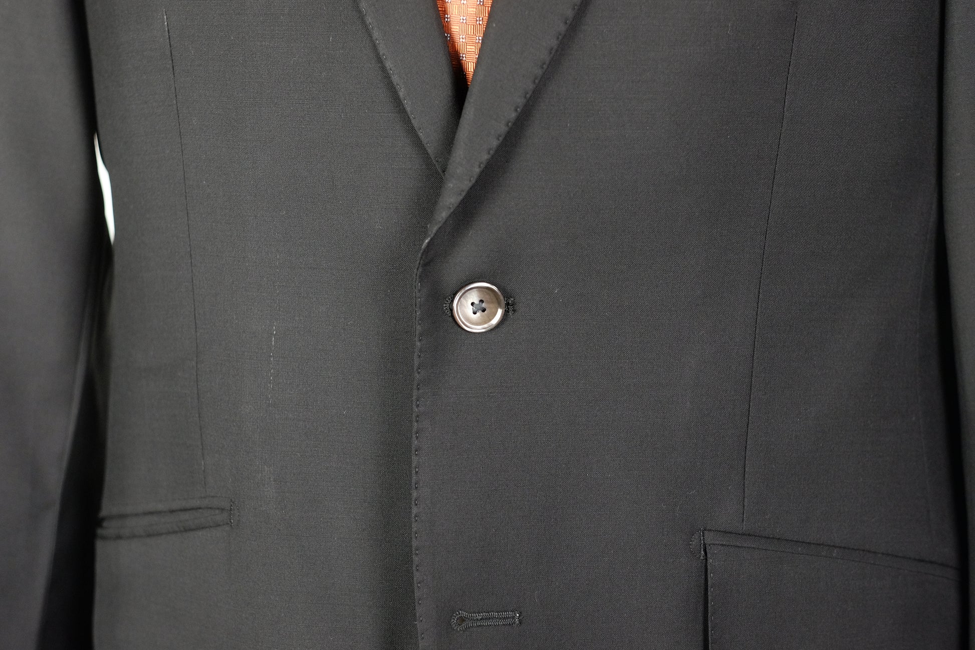 Un élégant costume noir deux boutons à revers crantés. Le look John Wick.