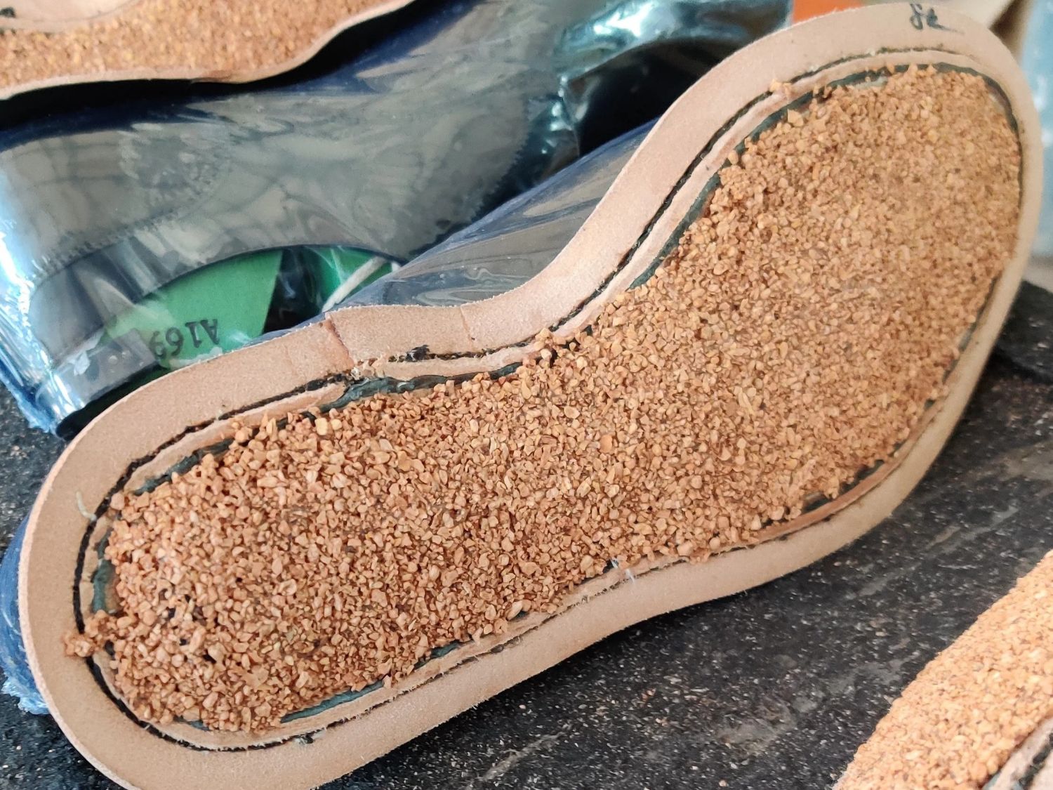 A layer of cork paste between the insole and the outsole gives a cushion effect and takes the shape of the feet giving a snug and comfortable fit especially over extended periods of wear.