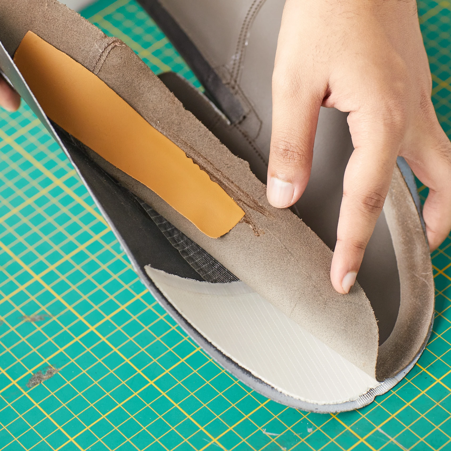 In 360° Channeling welted Goodyear, we use the same full substance (5mm to 6mm) leather bends as bespoke shoe making and create a channel by slitting open the edge of the insole.