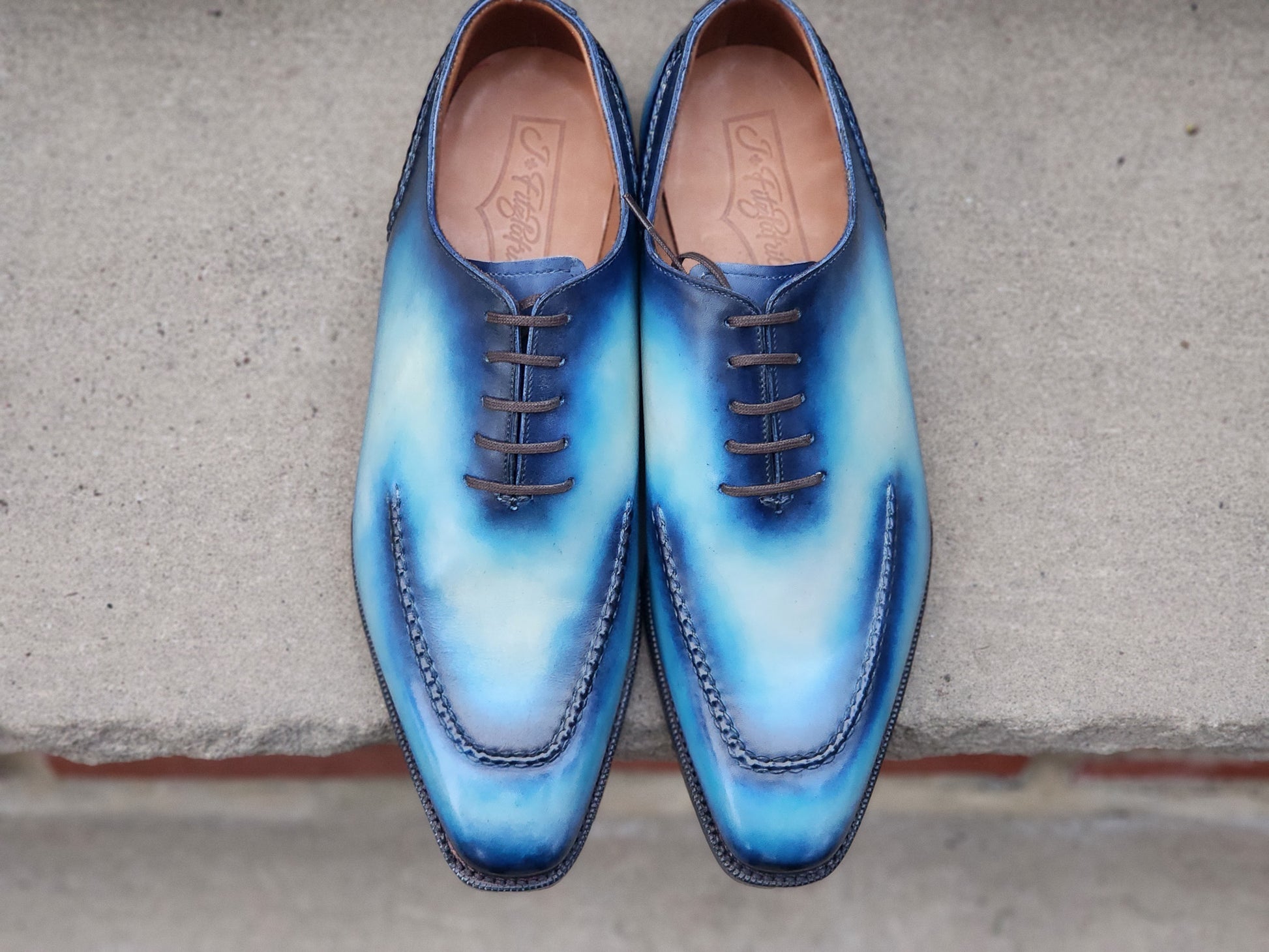 This J.FitzPatrick whole cut oxford, on the LPB Last, is a generous and elongated fitting shoe.