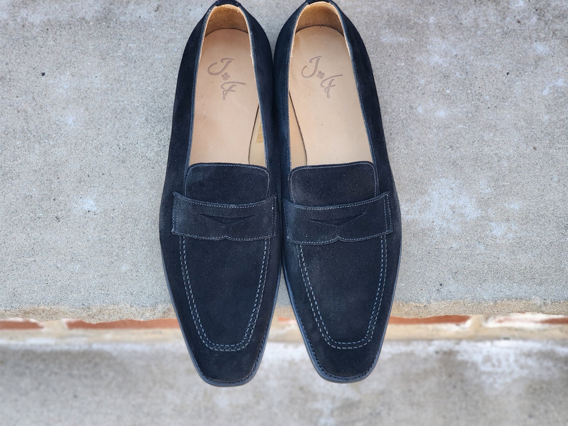 J.FitzPatrick - Penny Loafers - Black Suede (Second) - US 10.5