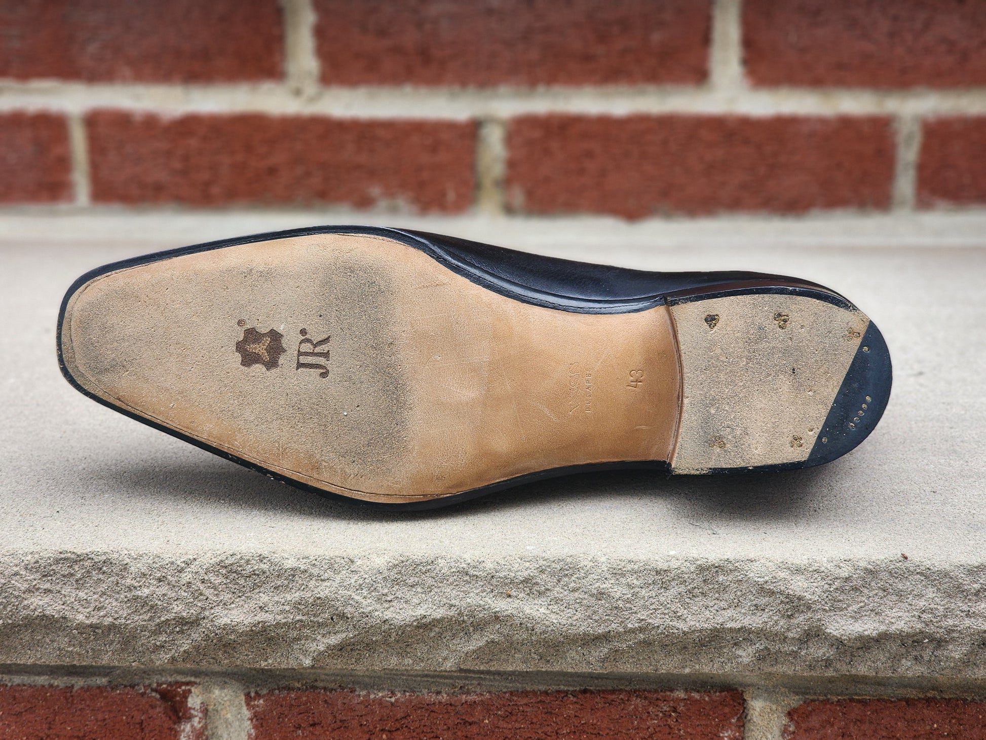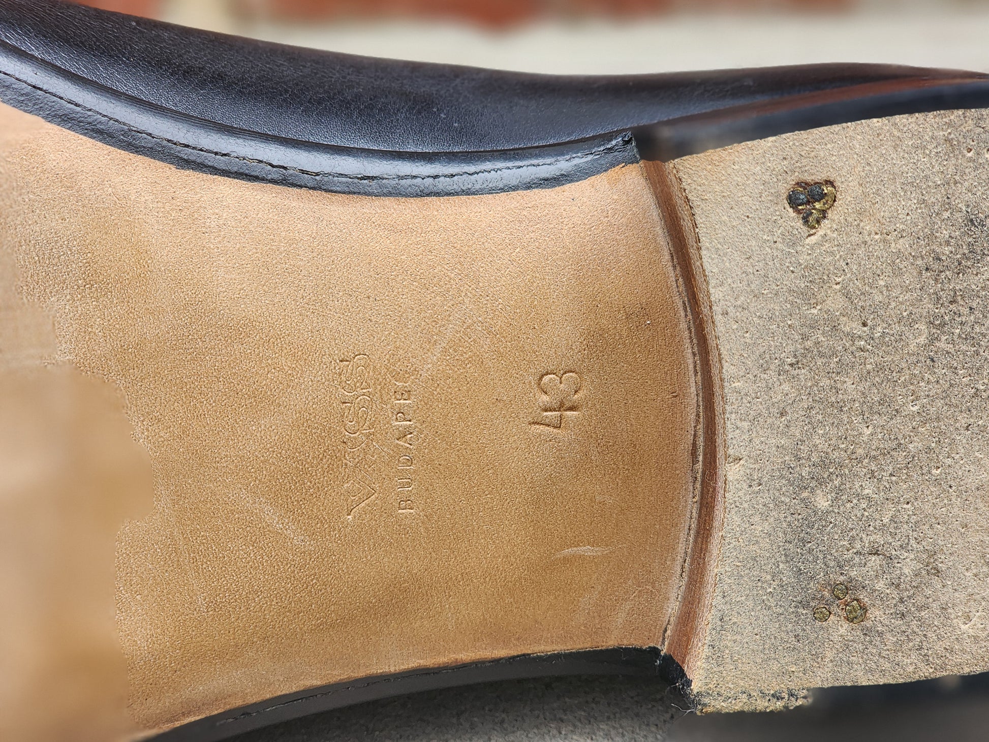 Here is a pair of Handmade Wholecut oxfords by Hungarian Shoemaker, Vass. If you were to purchase these shoes on their site (with lasted trees) and pay the import duties, they would be new at $715 landed to the US. I am selling these on behalf on a Shoe Snob Blog Follower. But I am shipping the shoes as they are in my possession.